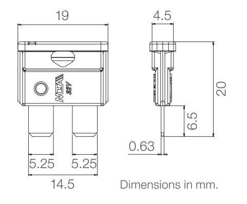 100 Adet 25 Amper Beyaz Standart Bıçak Sigorta 25A Standart Bıçak Sigorta İtalya üretimi Breaking capacity 1000 A Voltage rating 32 V Ambient temp.