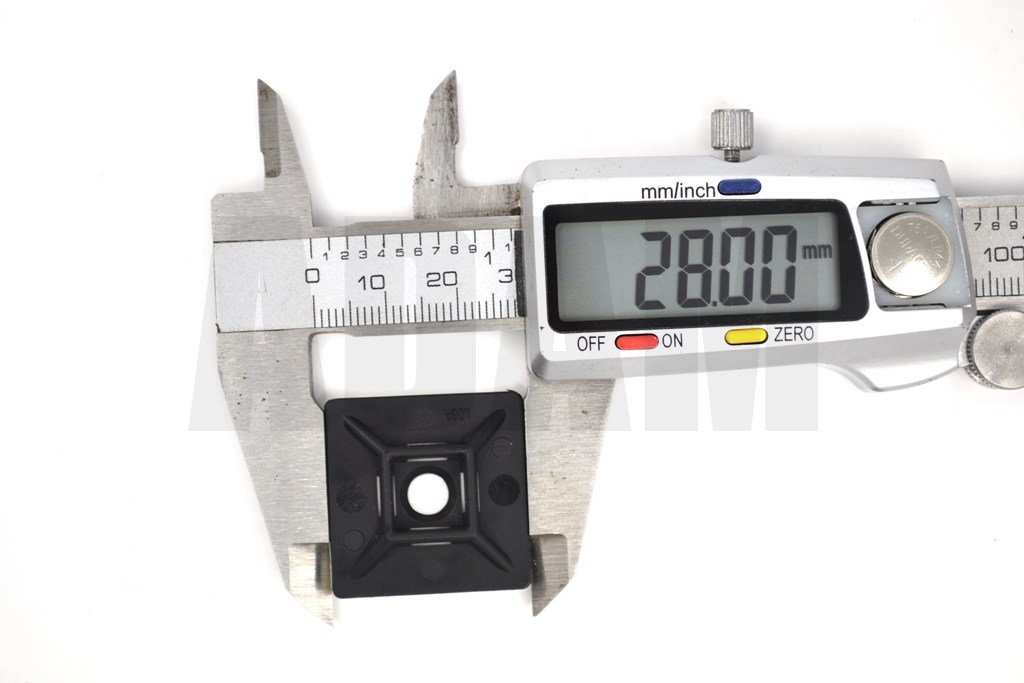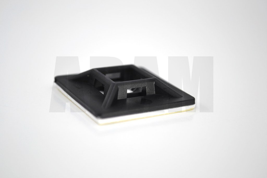 100 Adet Siyah 28x28 Yapışkanlı Kroşe Ortadan Delikli (Kablo Bağı Genişliği 4,8mm'e Kadar)