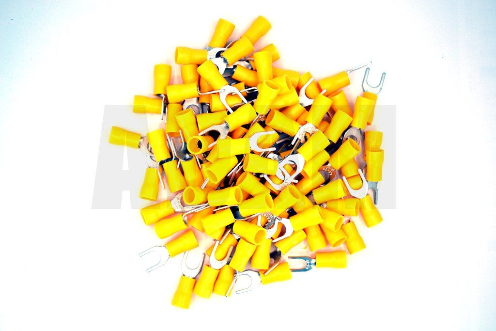 100 Adet 4,00-6,00 Bakır Kablo Pabucu Sarı M6 Çatal Sıkmalı Sulye